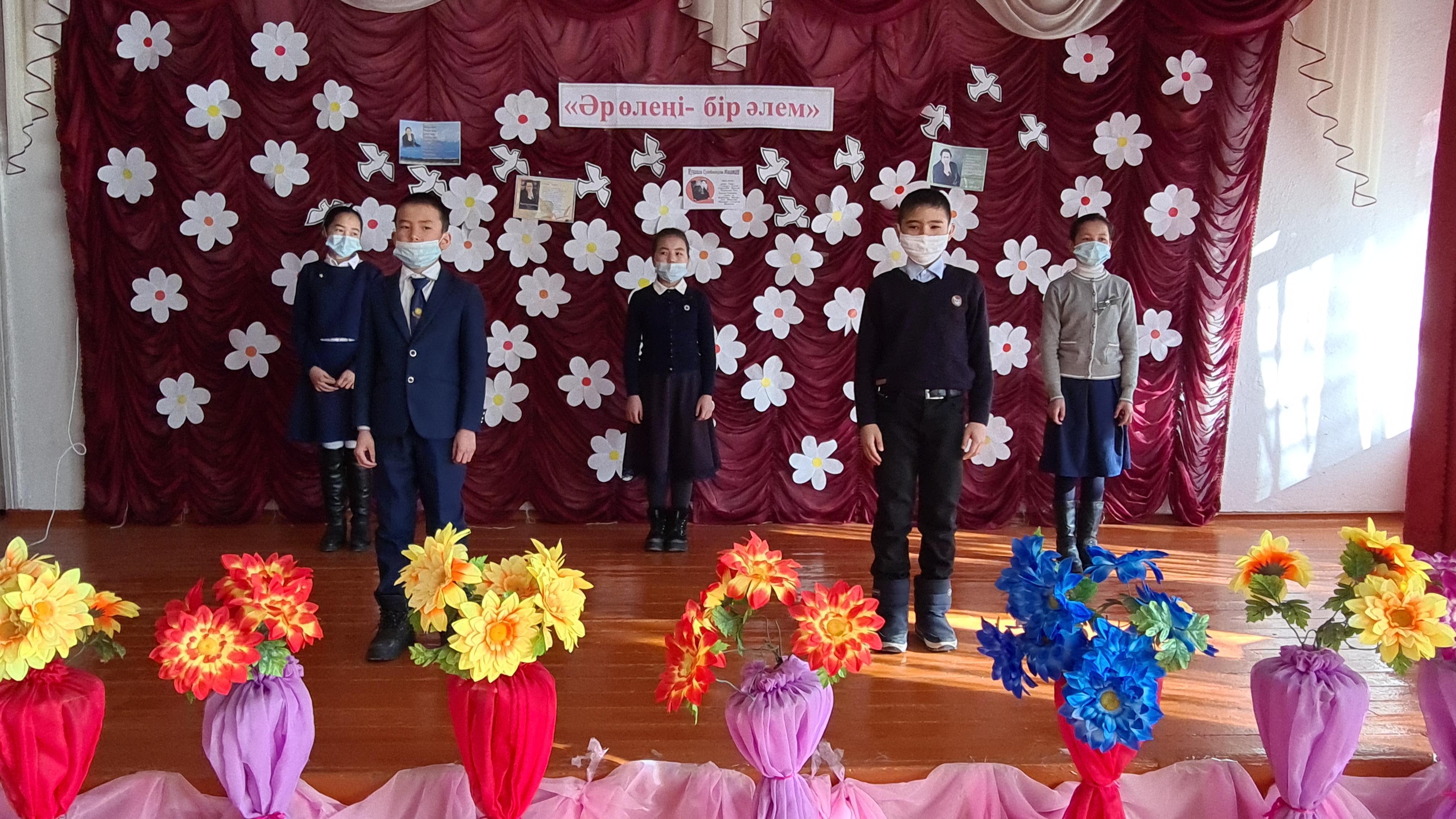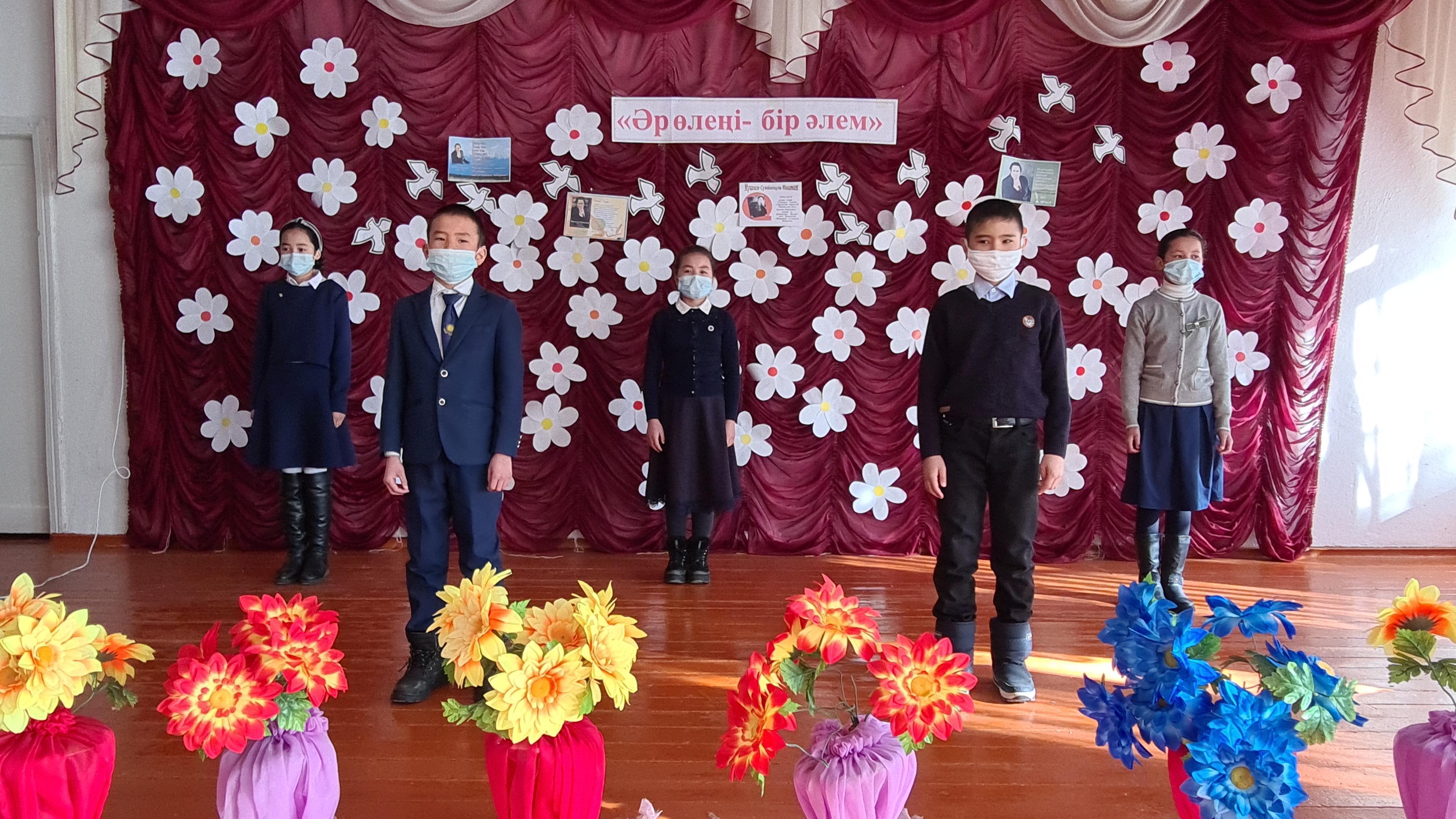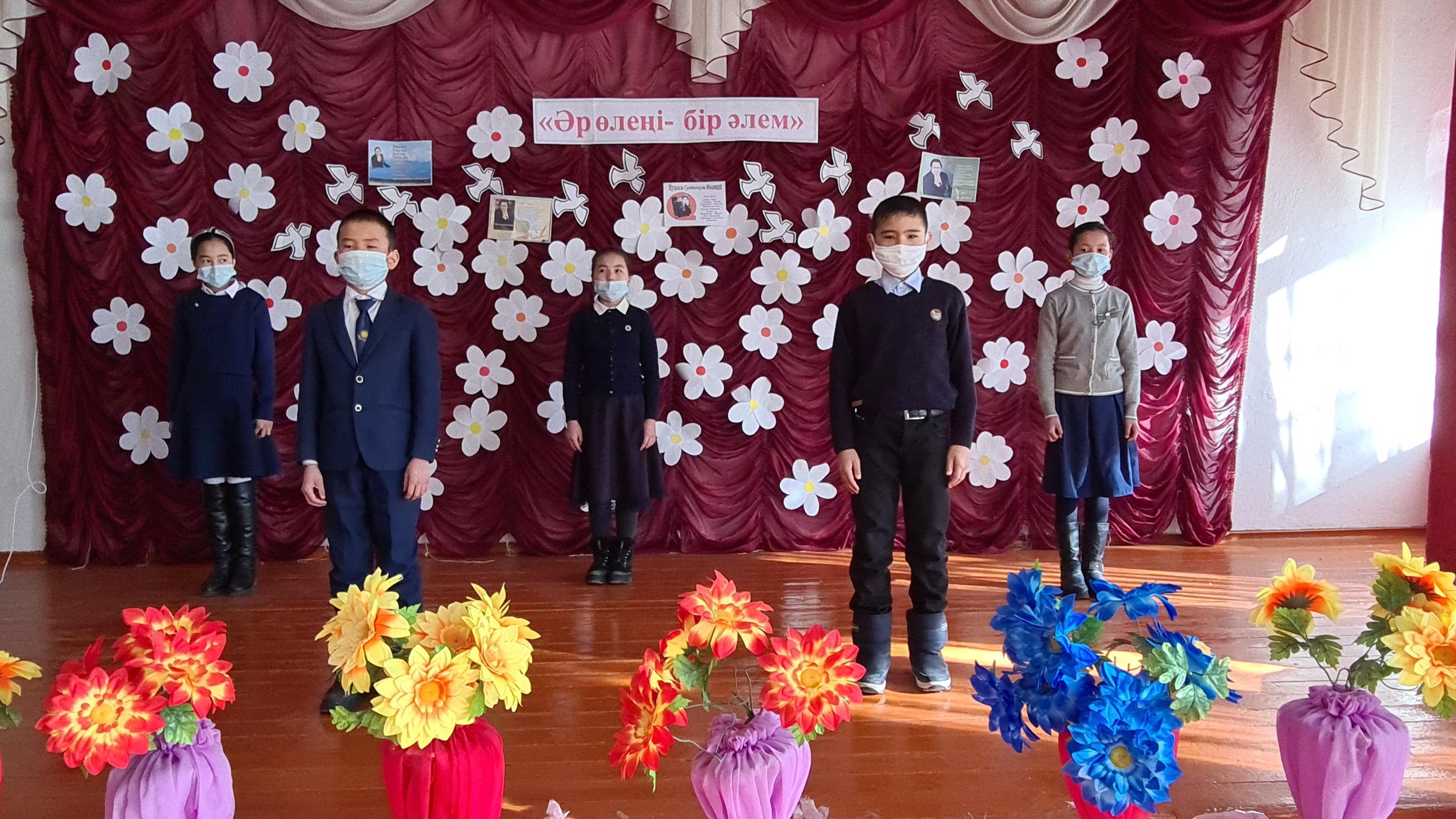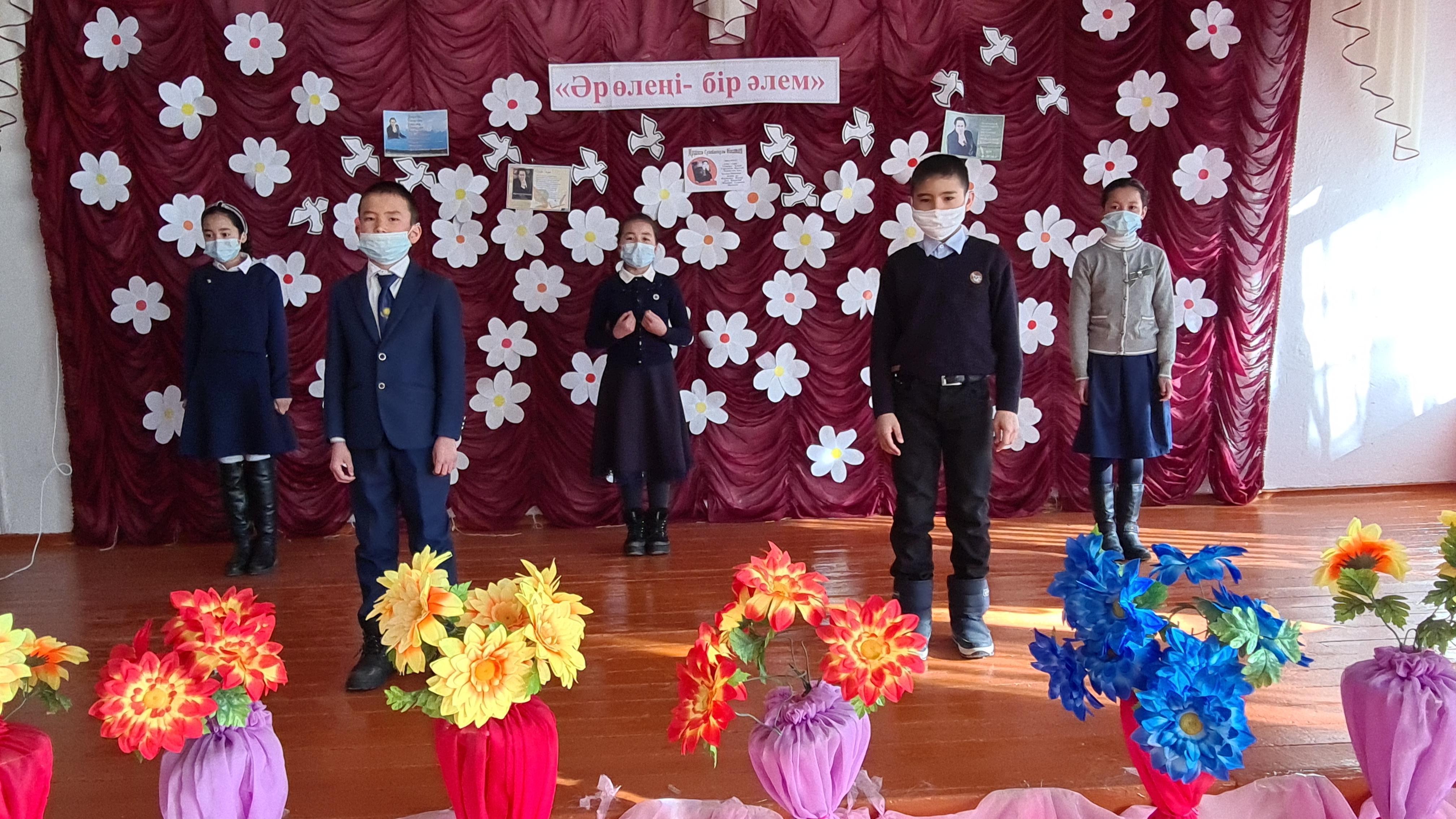 Т.Тоқтаров атындағы орта мектебінде. "Әр өлеңі-бір әлем" тақырыбында Мұқағалаи Мақатаевқа арналған әдеби кеш. Жауапты: Омар м, Елубаева М.А, Махсат Н.М.