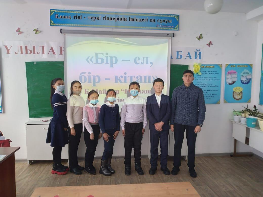 18 март 2021 0 1 2 3 4 5 "Бір ел, бір кітап" іс-шарасы аптаның, әр бейсенбі күні өткізіледі. Жауапты қазақ тілі пәнінің мұғалімі Елубаева М.А.