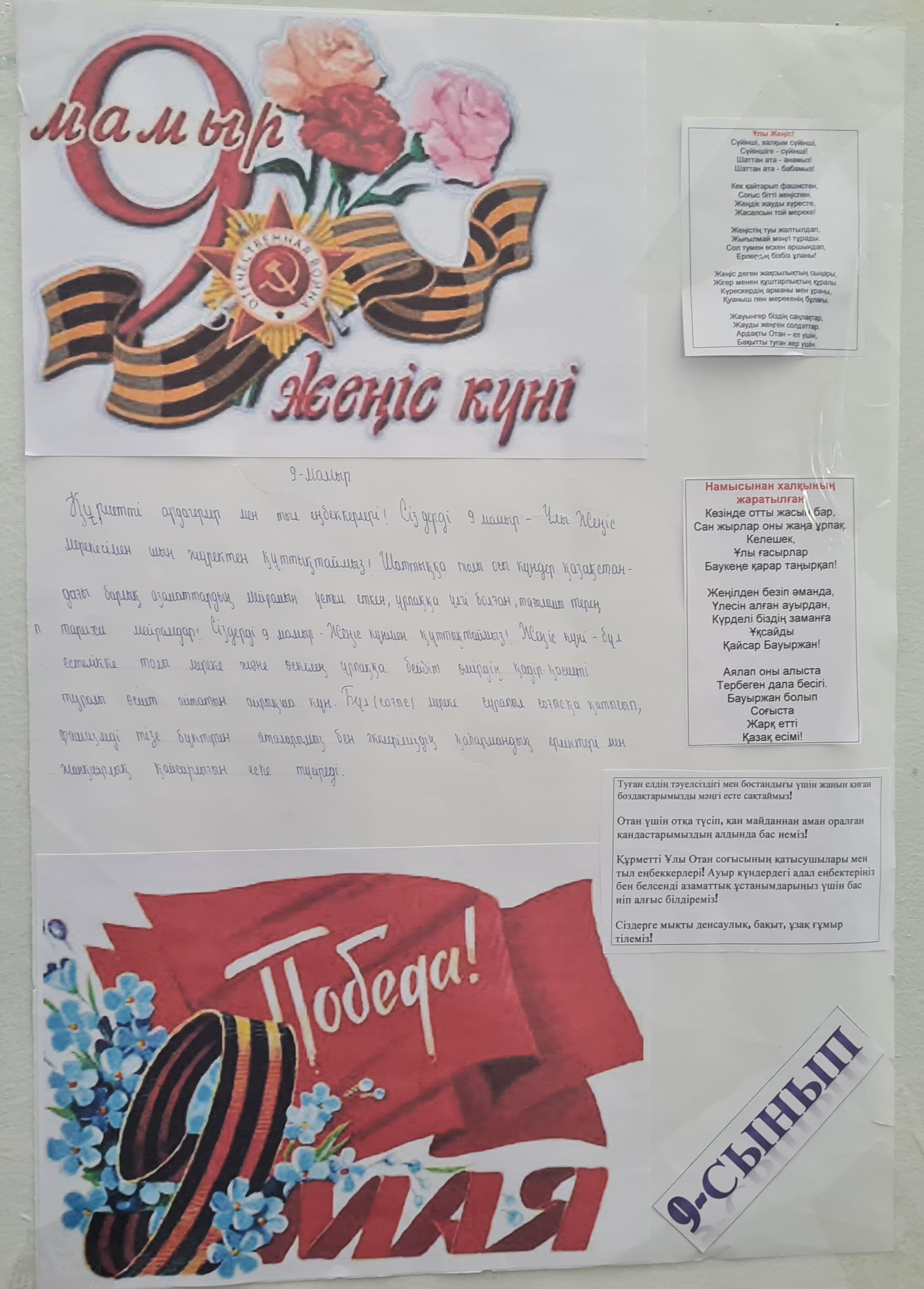 03 май 2021 0 1 2 3 4 5 7 мамыр Отан қорғаушылар күні, Ұлы Жеңіске 76 жыл толуына 5-10 сыныптар қабырға газетін шығарды.