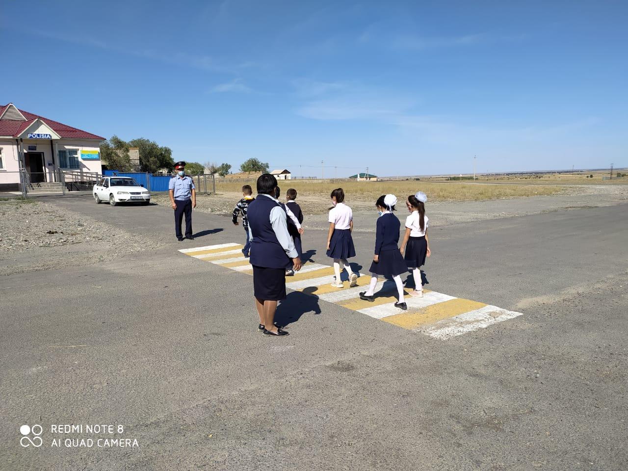 Жол жүру ережесіне байланысты бастауыш сынып оқушыларымен тәрбие сағаттары, полиция қызметкерімен кездесу өтті, видеороликтері жасалды. Мақсаты: Оқушыларды жол қауіпсіздік ережелерімен таныстыру.