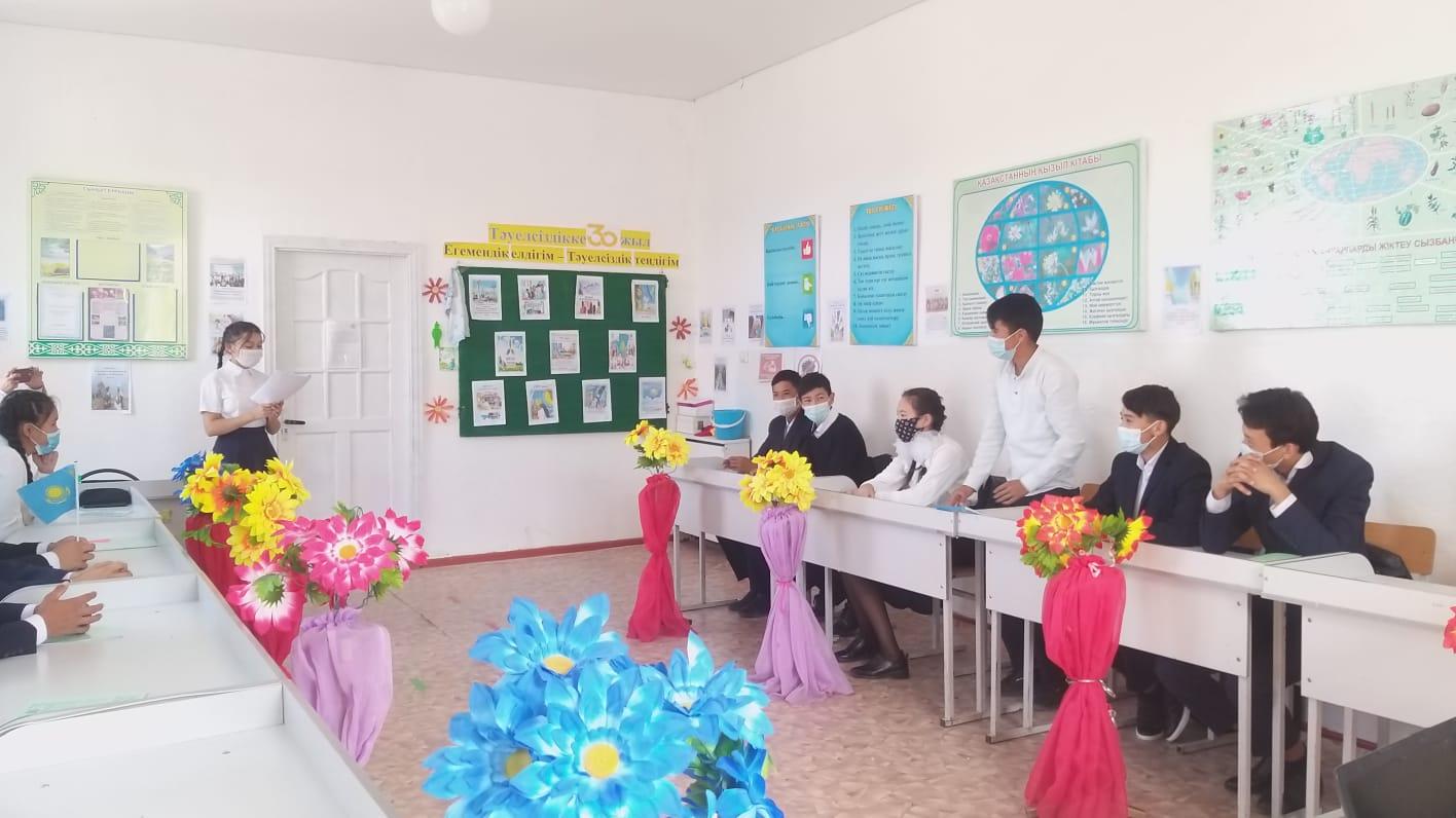 28 сентябрь 2021 0 1 2 3 4 5 Тәуелсіздіктің 30 жылдығына байланысты «Егемендік елдігім-Тәуелсіздік теңдігім!» тақырыбында тәрбие сағаты өтті. https://photos.app.goo.gl/RxMReis6AdorZBoh9