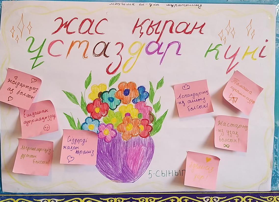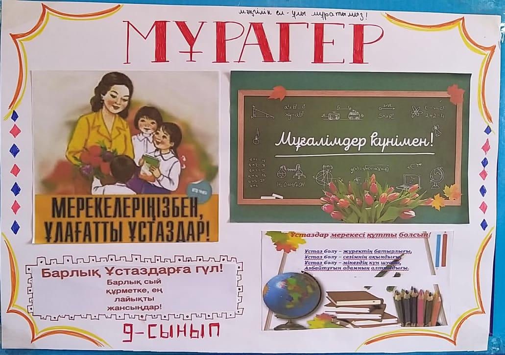 «Ұстаздық етпес жалықпас үйретуден балаға» - деген ұлы Абай бабамыз. "Ұстаздары күніне" арналған мектепішілік қабырға газеттері ілініп, құттықтау видеороликтері салынды,