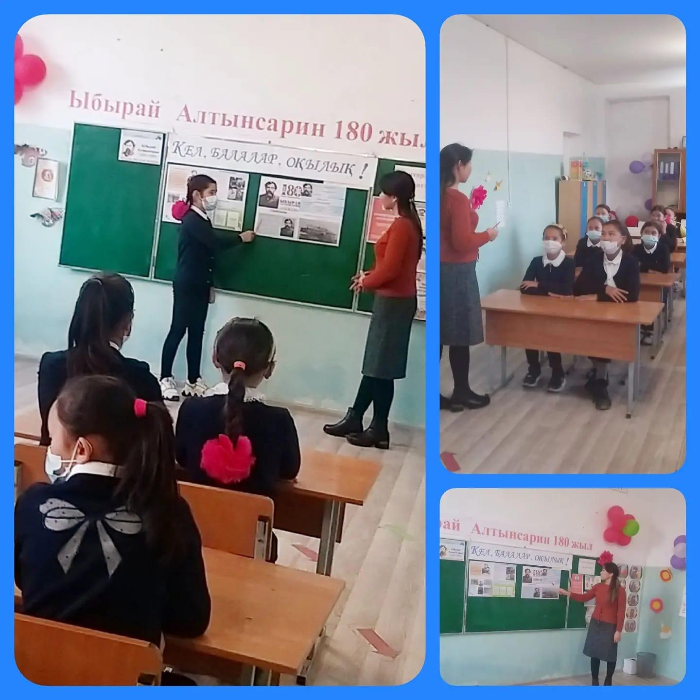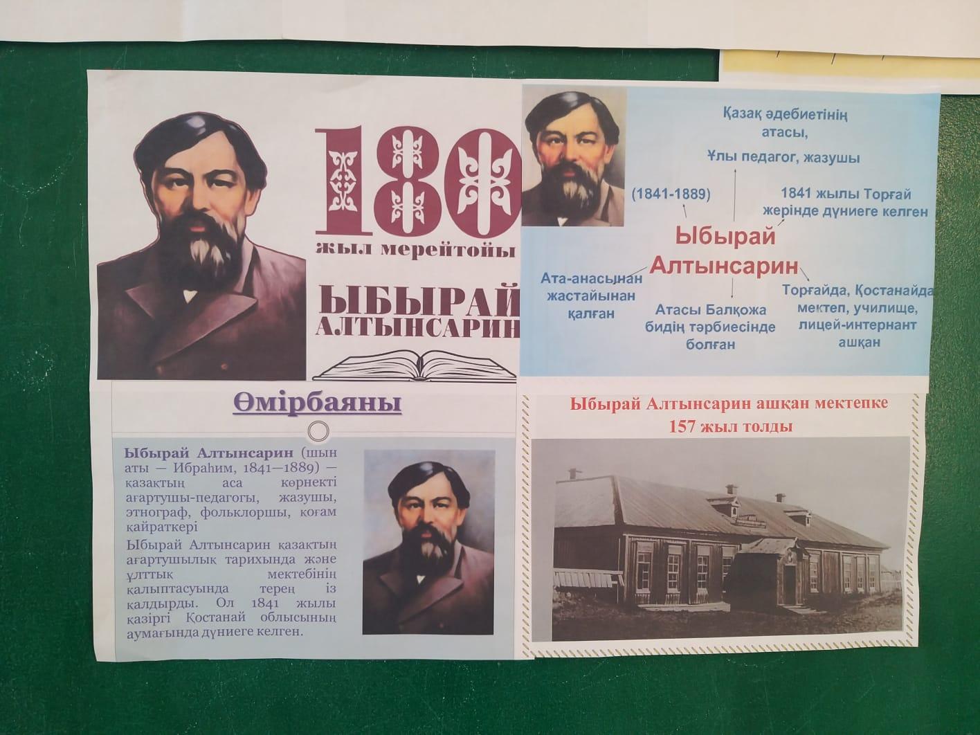 Ыбырай Алтынсариннің 180 жылдығына орай "Кел, балалар оқылық" тақырыбында педагог-ұыйымдастырушы төменгі сынып оқушыларымен тәрбие сағатын өтсе, жоғарғы сынып оқушыларымен дөңгелек үстел ұйымдастырды.