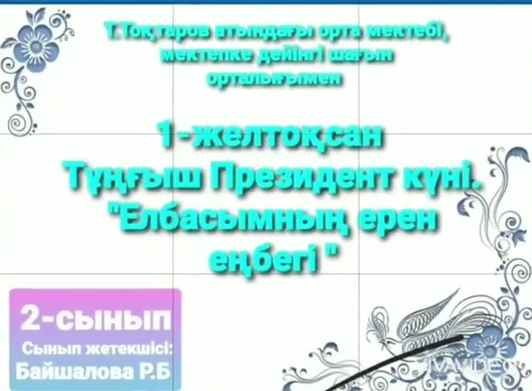 1 желтоқсан ҚР Тұңғыш Президенті күніне орай 1–11 сынып арасында тәрбие сағаттары өтті. Мақсаты: Елбасының ел үшін жасаған істерін үлгі-өнеге ету,Отанын, халқын сүйетін азамат болып өсуге, елжандылыққа, патриоттық сезімге тәрбиелеу. » 1. 'Т.Тоқтаров атындағы орта мектебі, мектепке дейінгі шағын орталығымен' коммуналдық мемлекеттік мекемесі