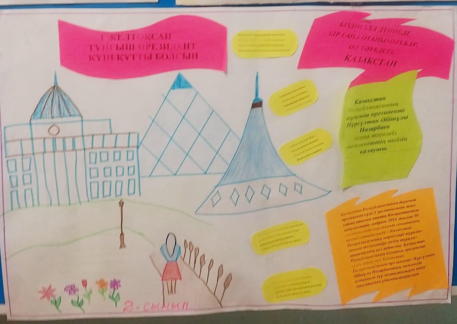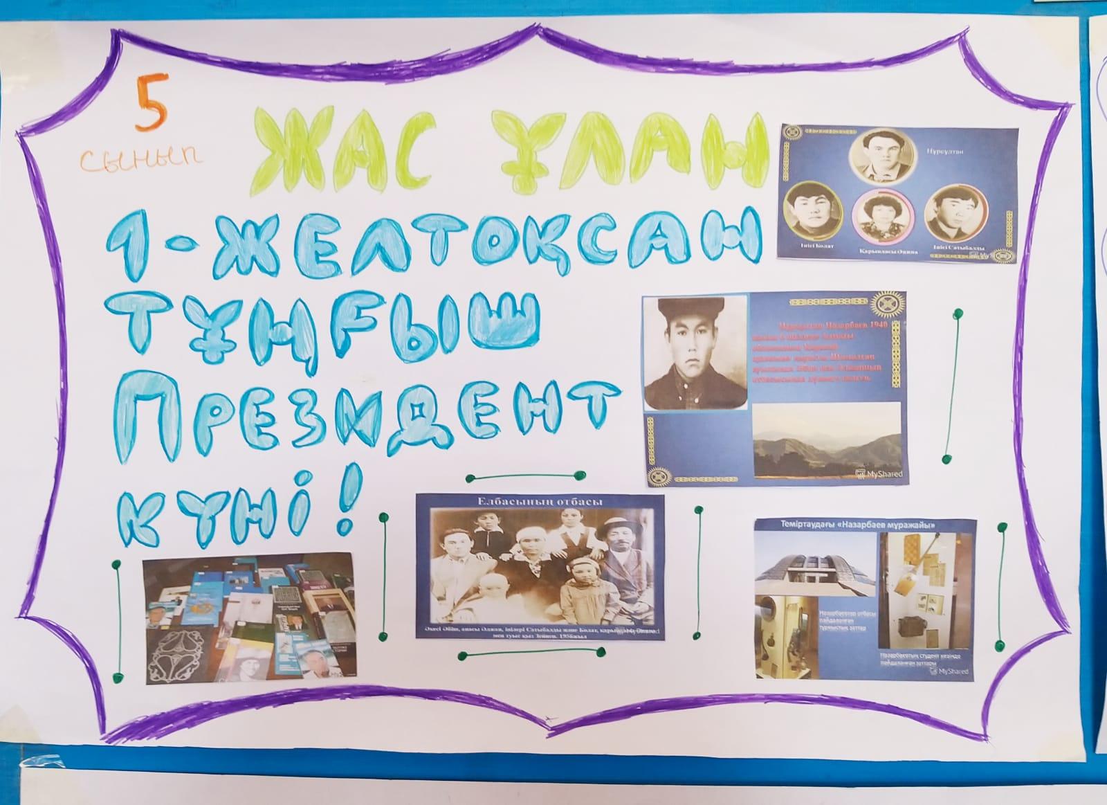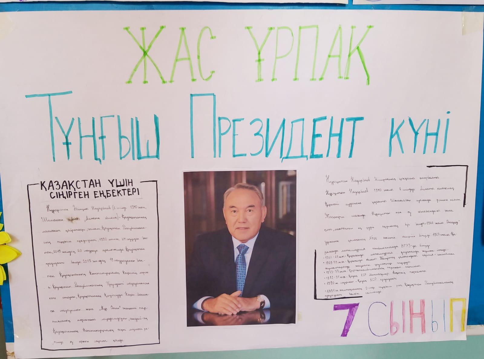 1 желтоқсан ҚР Тұңғыш Президенті күніне "Ел басы - ел тірегі" атты мерекелік концерт ұйымдастырылды және қабырға газеттері ілінді. Елбасының ерен еңбегін мақтаныш сезіммен оқушылар бойына сіңіру. » 1. 'Т.Тоқтаров атындағы орта мектебі, мектепке дейінгі шағын орталығымен' коммуналдық мемлекеттік мекемесі