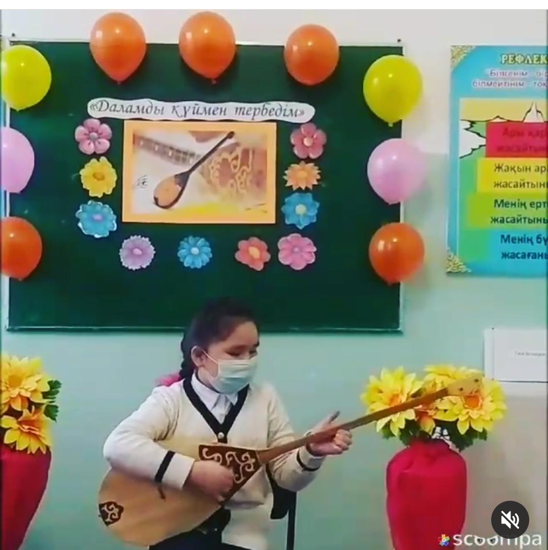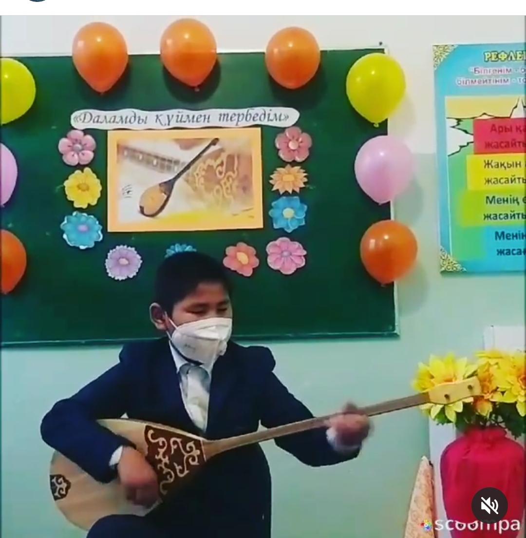 Жастардың ой ұшқырлығын шыңдап, ата бабадан кәсіп болған дәстүрлі домбыраға қызығушылық сезімін ояту мақсатында 4-6 сынып оқушылар арасында "Даламды күймен тербедім" тақырыбында музыка пәні Ахметчин.С челлендж ұйымдастырды.