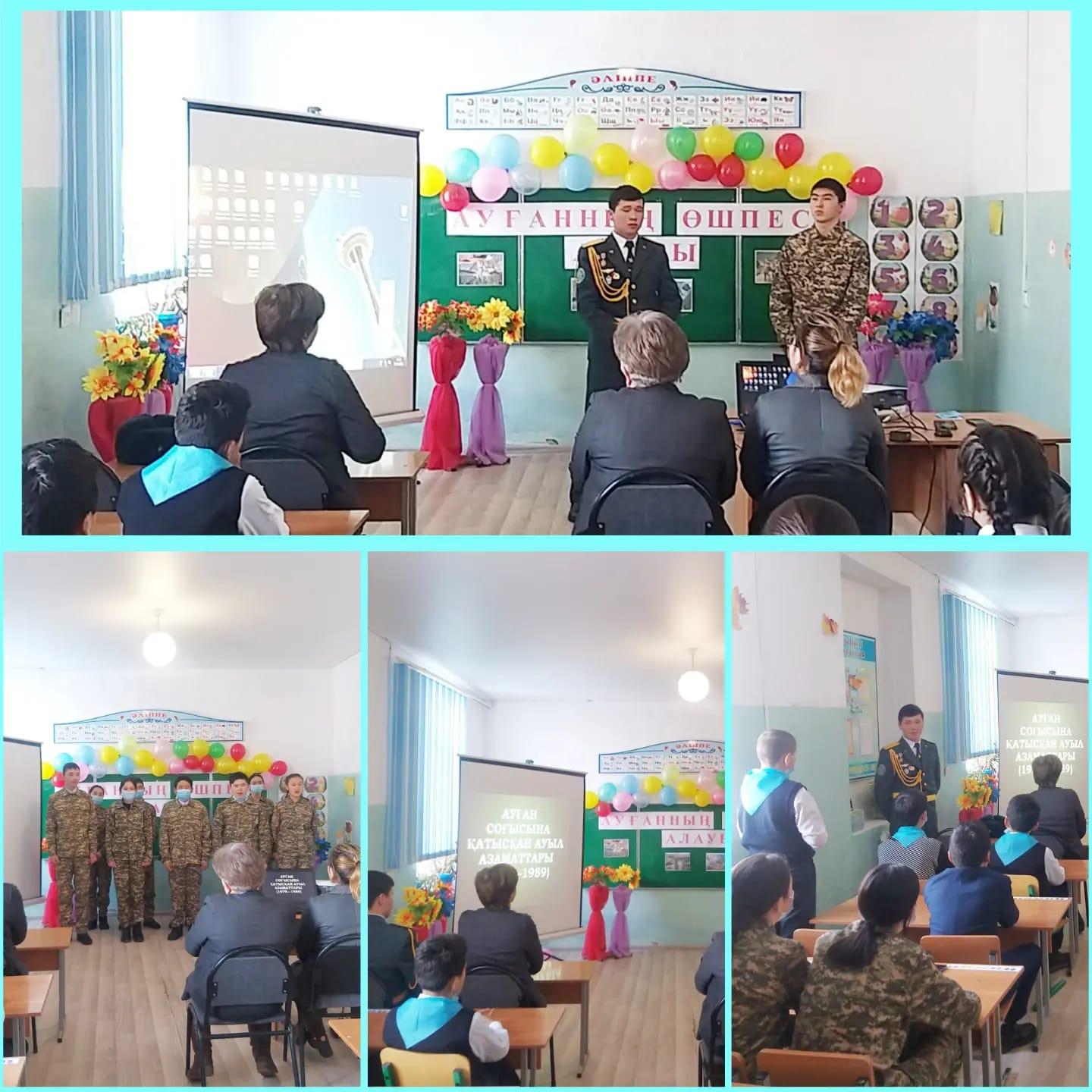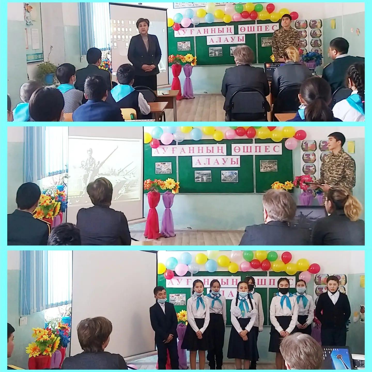 Кеңес әскерлерінің Ауғанстан жерінен шығарылғанына 33 жыл толуына орай, «Ауғанның өшпес алауы» атты Ауған соғысына қатысқан ардагерлерді және ауылымыздың азаматтарын еске алуға арналған мектепішілік шара өтті.