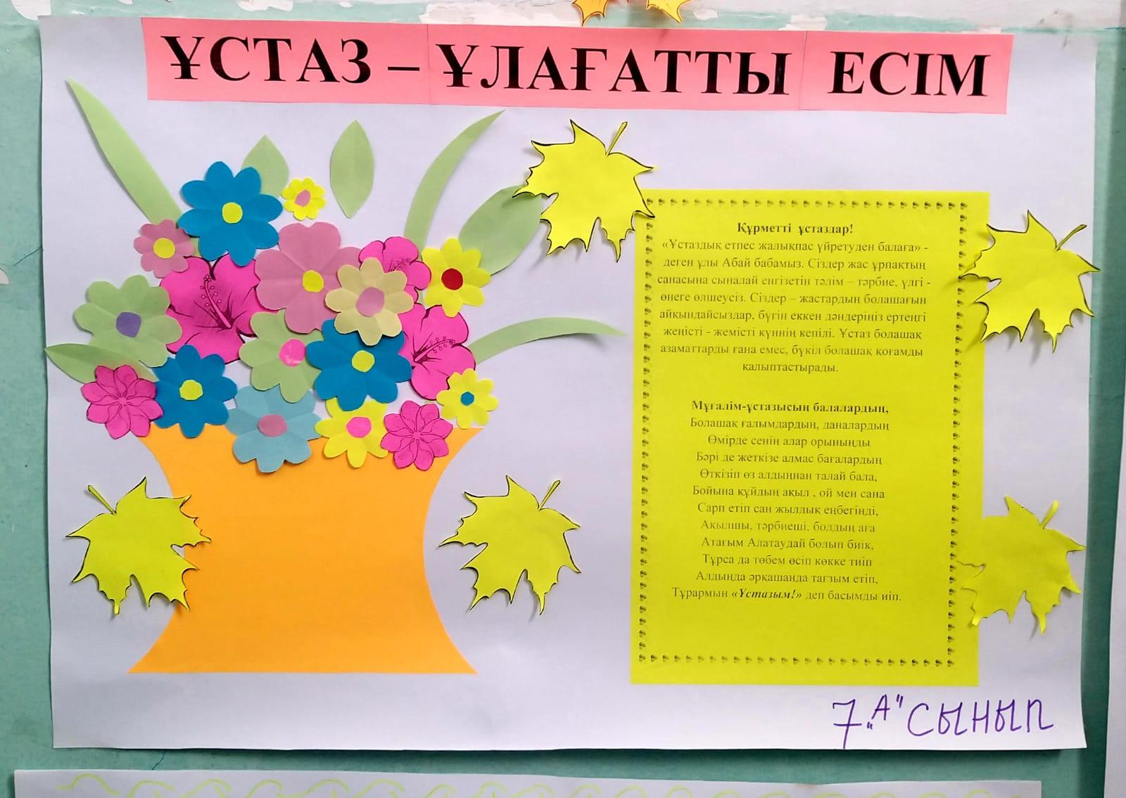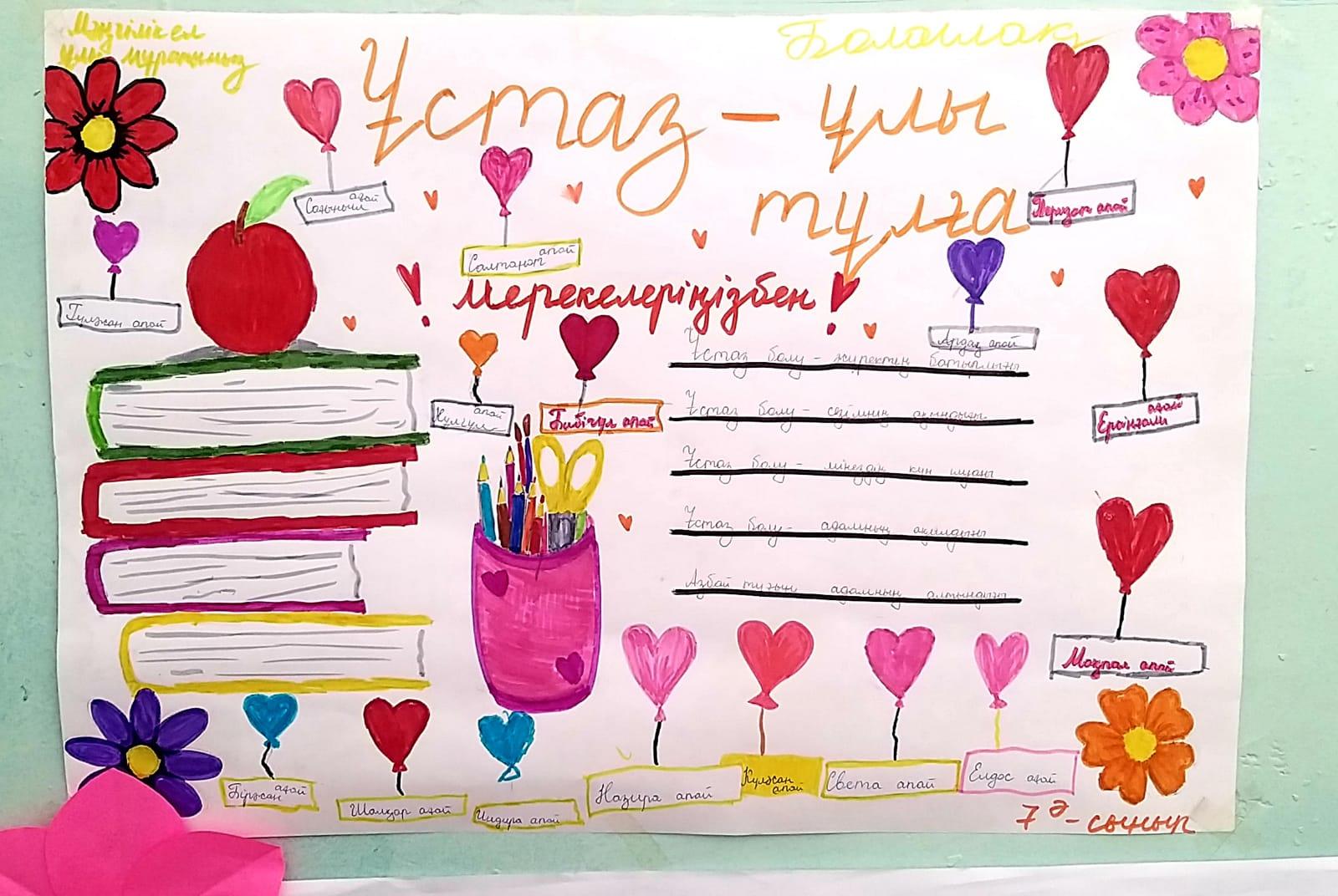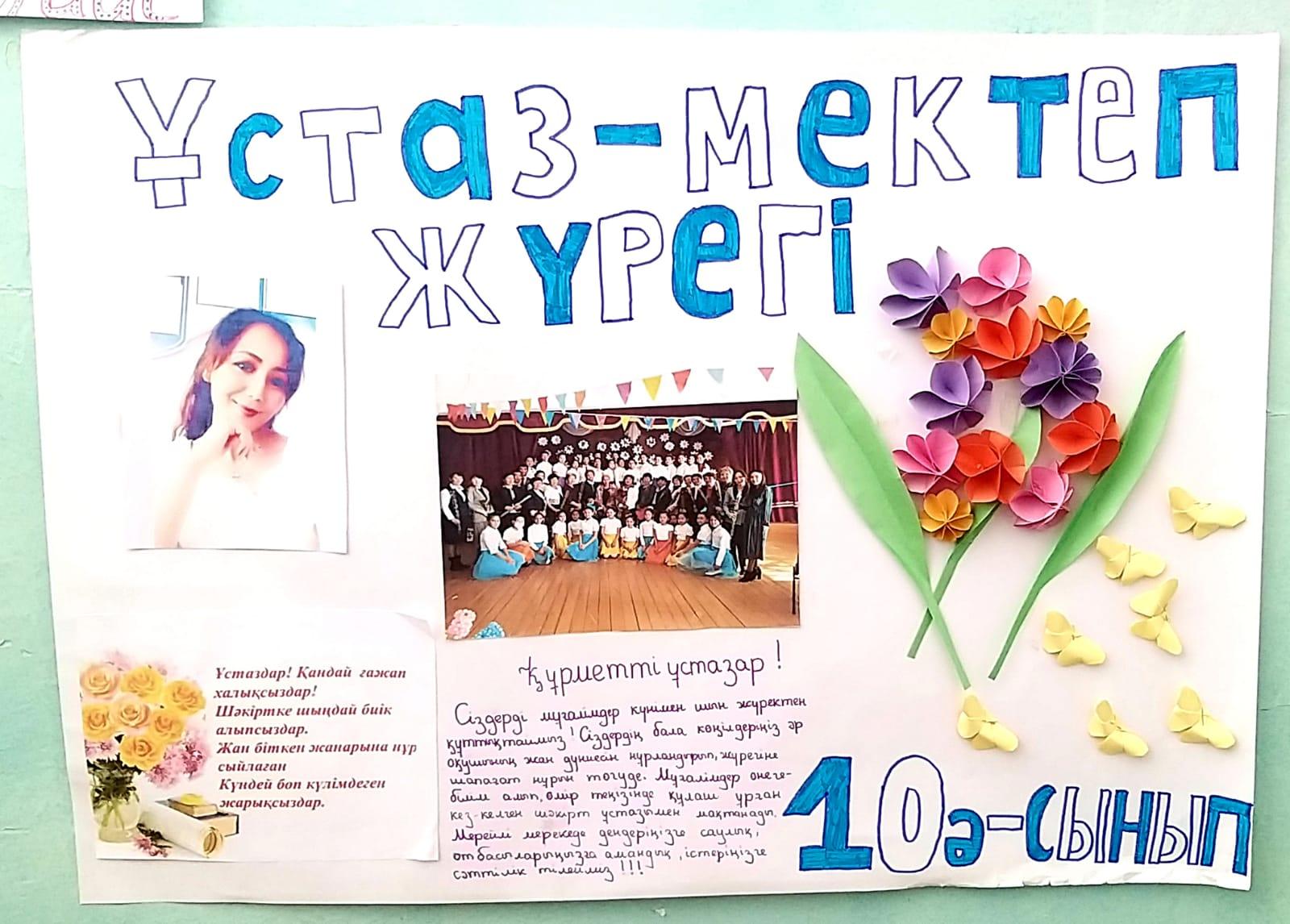 29 сентябрь 2022 0 1 2 3 4 5 "Ұстаздар - ұлы тұлғалар" Мұғалімдер күні қарсаңында сыныптар арасында “Ұстаздарға - ұлы тұлғалар” атты қабырға газеттерін шығарылды. Барлық сыныптар белсенді қатысты, қабырға газеттерінде ұстазға жылы лебіздері мен тілектерін арнады.