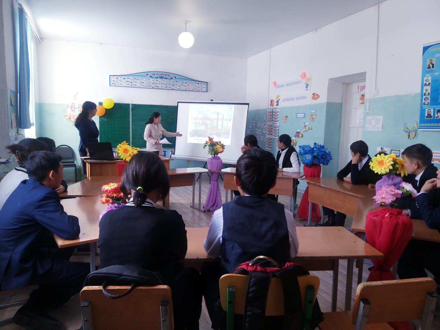 "Экология - ел амандығы" тақырыбында 8 - 9 сыныптар арасында доңгелек үстел ұйымдастырылды. Мақсаты: білімділік – оқушылардың табиғат туралы білімдерін молайту, табиғатты қорғау әр адамның міндеті екенін ұғындыру. Жауапты: Биология және география пәні мұғалімдері.
