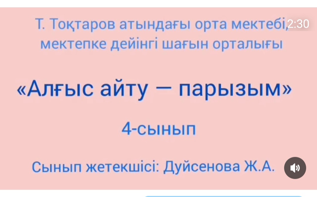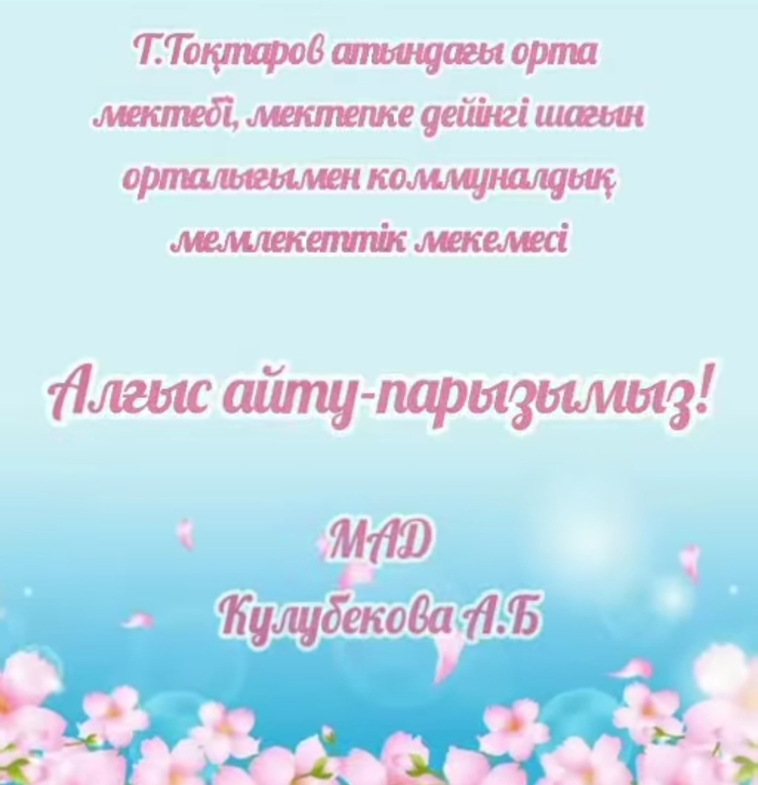 01 март 2023 0 1 2 3 4 5 Алғыс айту парызымыз! 1-Наурыз Алғыс айту күніне орай "Алғыс айту парызымыз" тақырыбында барлық сыныптарда сынып сағаттары, құттықтау бейнероликтер, ертеңгіліктер өткізілді.