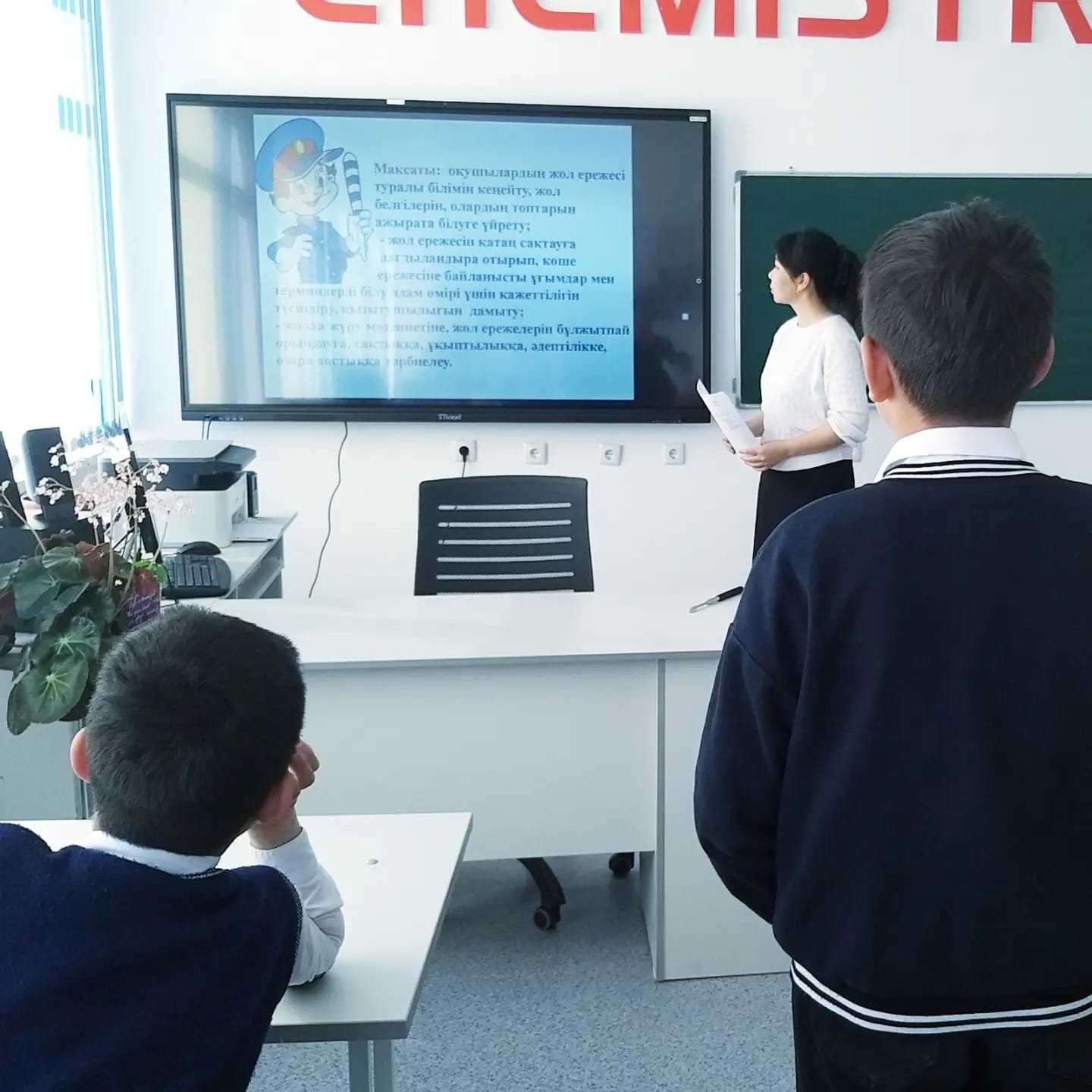 Мақсаты: Оқушыларды жолда жүру ережесімен таныстыру. Жол қауіпсіздігін есте сақтауға, білуге жол ережесінің  белгілерімен жүре білуге үйрету. Оқушыларды көшеде дұрыс жүріп, жол ережесін сақтауға тәрбиелеу.