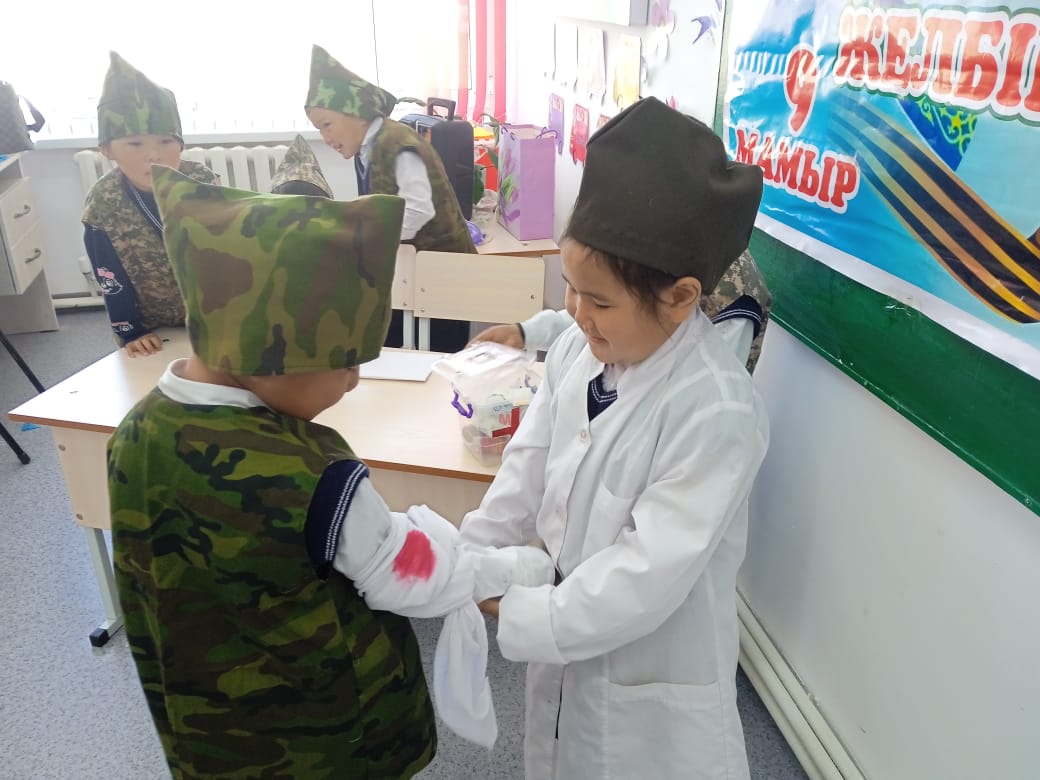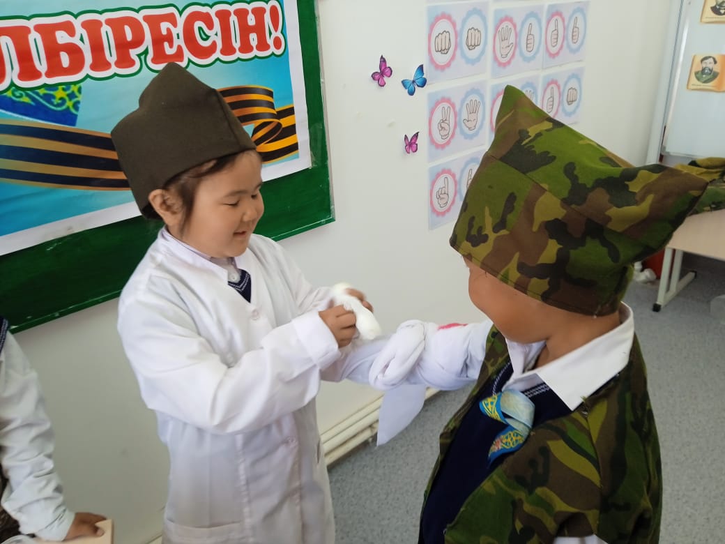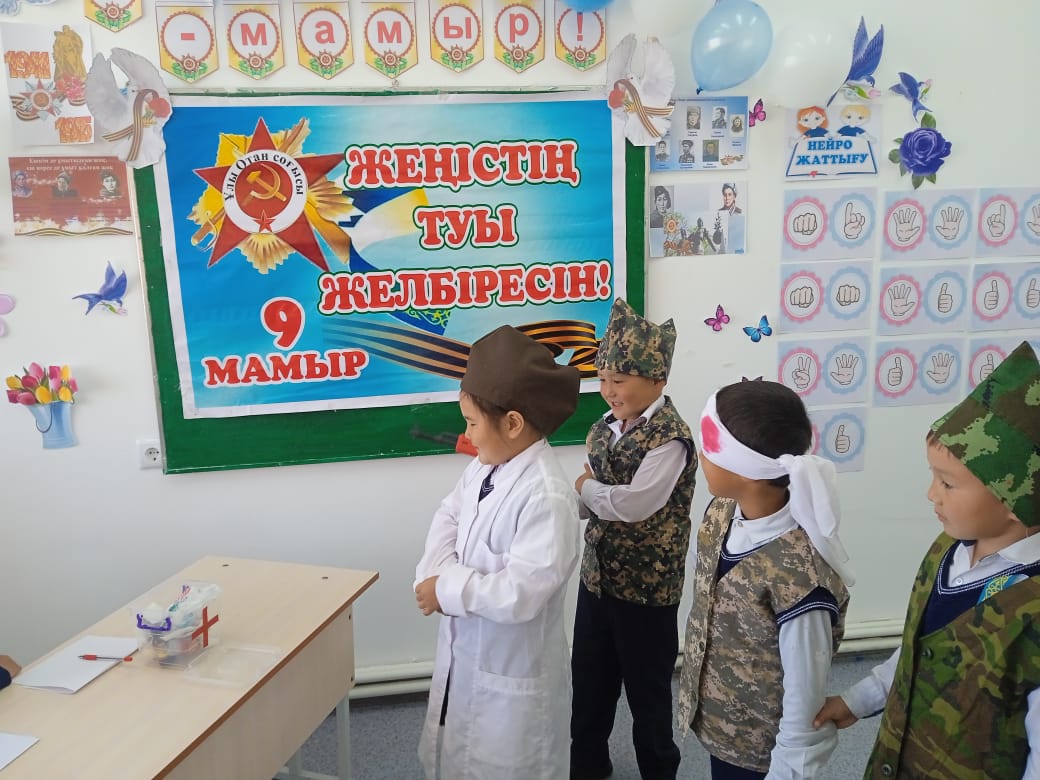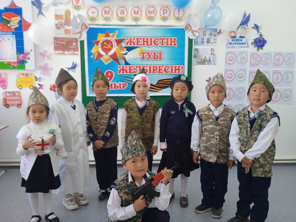 "Жеңістің туы желбіресін" тақырыбында ертеңгілік. » 1. 'Т.Тоқтаров атындағы орта мектебі, мектепке дейінгі шағын орталығымен' коммуналдық мемлекеттік мекемесі