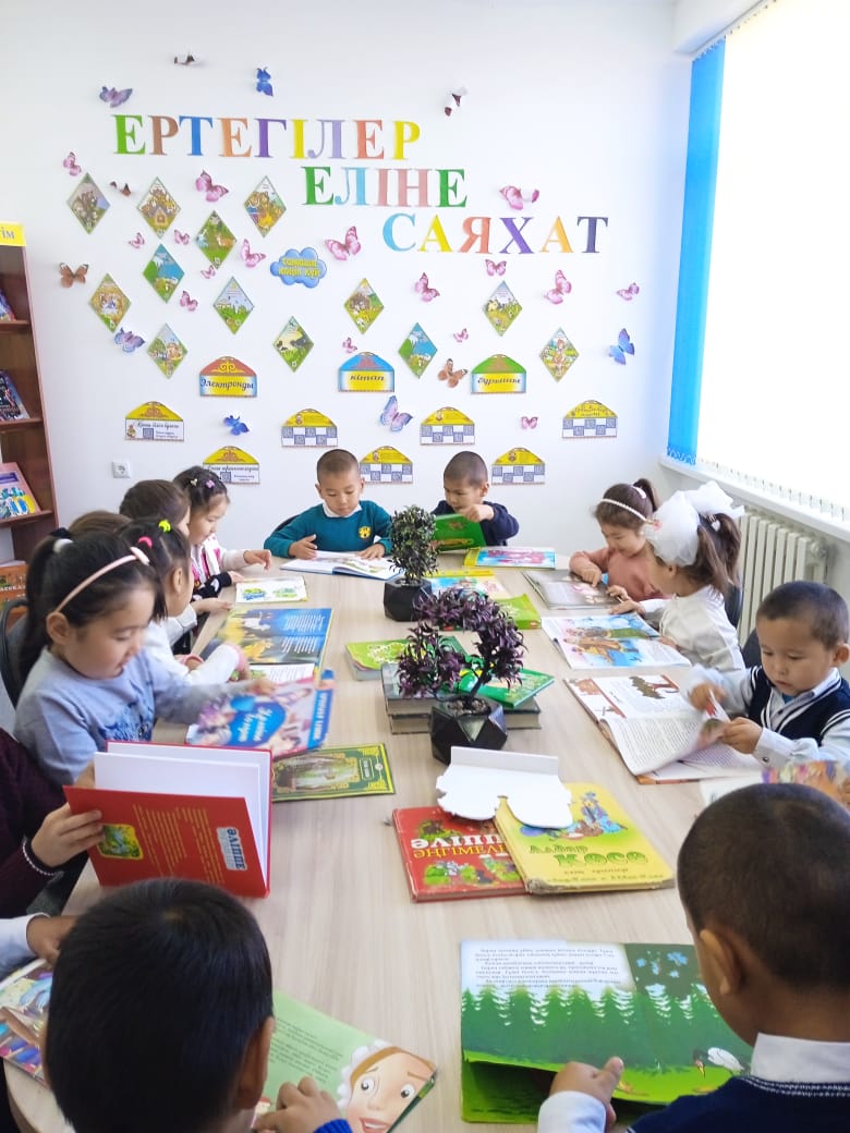 "Оқуға құштар мектеп"жобасы аясында мектеп кітәпханасында мектеп кітапханашысы және Мектепалды даярлық сыныбының оқушыларының ұйымдастырылуымен "Ертегілер еліне саяхат"тақырыбында іс -шара өткізілді.
