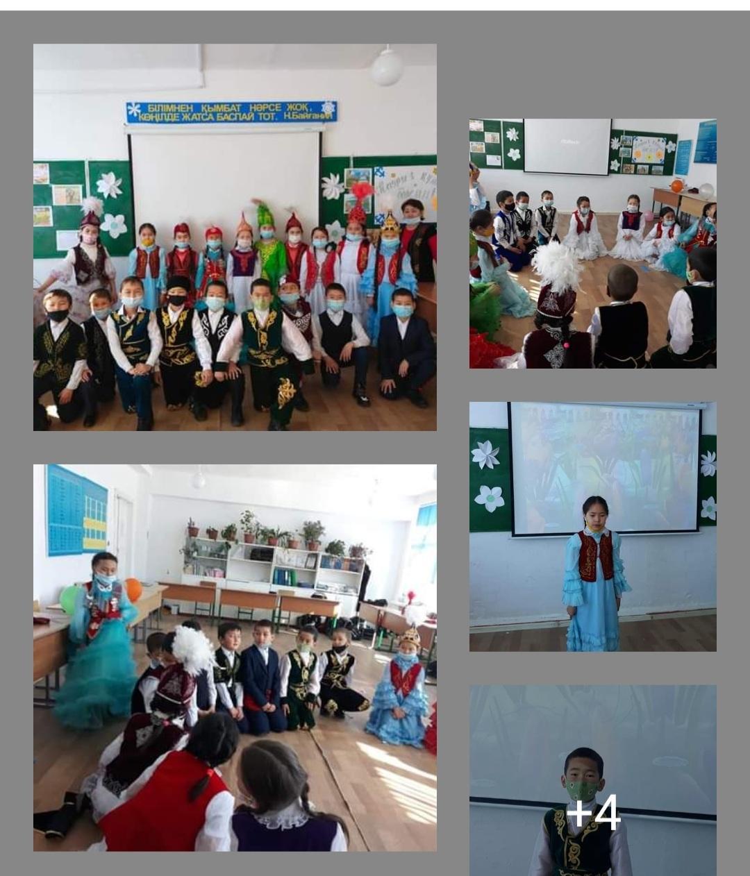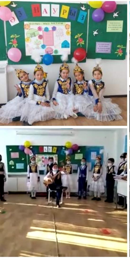 "Ұлыстың ұлы күні Наурыз" мейрамына 2,3,4,5ә,5а,6,7,10-сыныптарда тәрбие сағаттары өткізілді. Жауапты сынып жетекшілер: Дуйсенова Ж, Тубекбаева Г, Мырзағалиева Е, Салкимбекова Г,Жамали Е, Долдаев Ш, Елубаева М, Махсат Н.